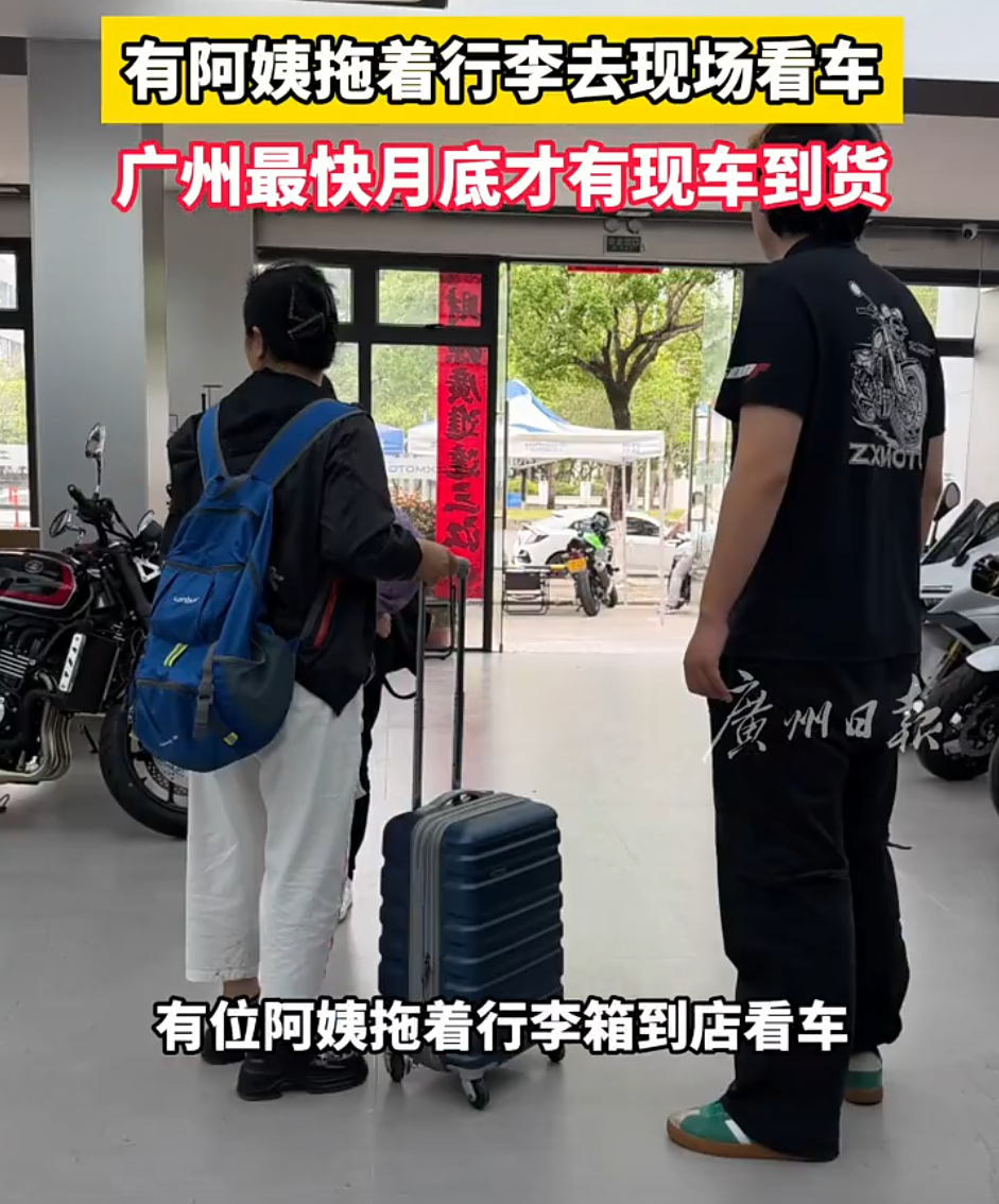 张雪机车广州门店销量倍增,大姨拖箱来看车