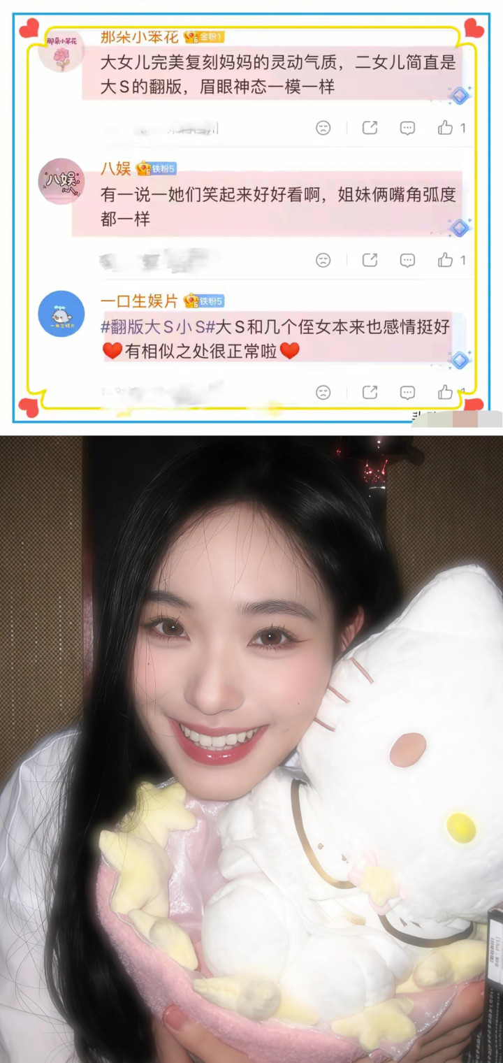 按照当今的发展势头,以前淌若她聘任发愤影视行业,随机弗成走出一条属于我方的路,致使有望追上姆妈小S的劳动高度。当今不少网友王人在探讨她和大S的同样处,你合计两个东说念主的气质像吗?
