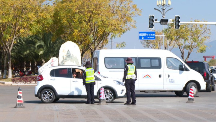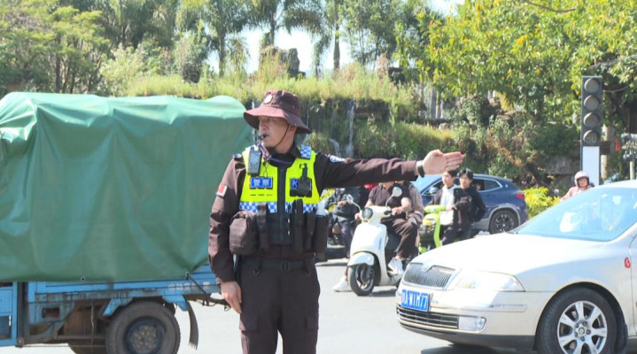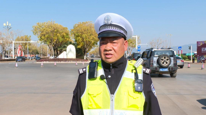 [弥勒市公安局交通管束大队民警李智宏]:春节期间车流量比平时大好多,路口是交通的枢纽节点,咱们会守好每一个岗、站好每一班哨,多一分专注,谈路就多一分顺畅,各人出行就多一分安全。