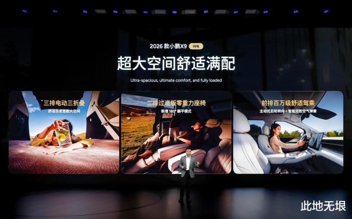 与第二代VLA同步登场的2026款小鹏X9纯电版,在智能科技、续航、空间与安全上全维焕新,居品力全面对皆超等增程版,成为家用大车首选车型。