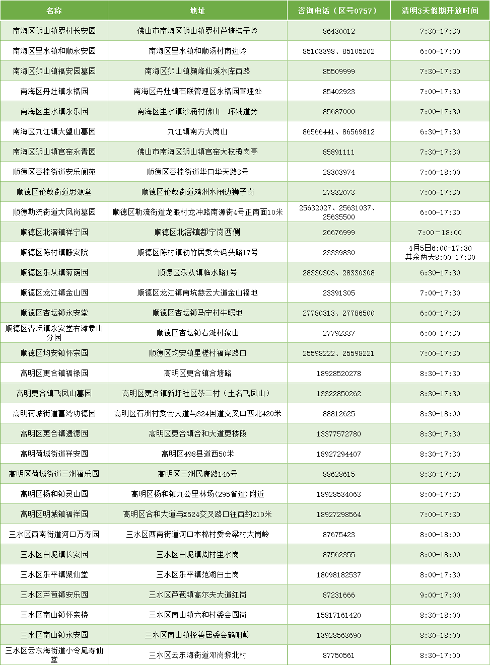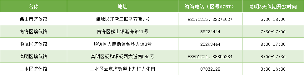 对于晴明祭扫的关系问题市民可推敲佛山各区民政局约略各殡葬事业机构,推敲形状如下: