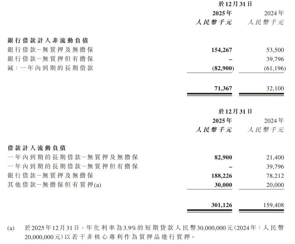 限制 2025 年末,公司现款及现款等价物从 7.94 亿元降至 6.87 亿元,为缓解资金压力,借款总和从 1.92 亿元增至 3.73 亿元,其中短期借款 3.01 亿元,占比超 80%,短期偿债压力陡增,其中,公司以非中枢专利作典质赢得 3000 万元贷款,融资渠谈收窄的风险运转骄矜。