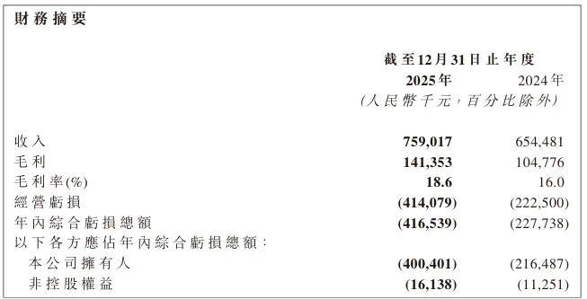 财报骄矜,公司 2025 年年内概述亏欠总和达 4.17 亿元,较 2024 年的 2.28 亿元同比扩大 83%;经调遣亏欠净额率达 - 49.6%,较 2024 年的 - 25.5% 近乎翻倍。