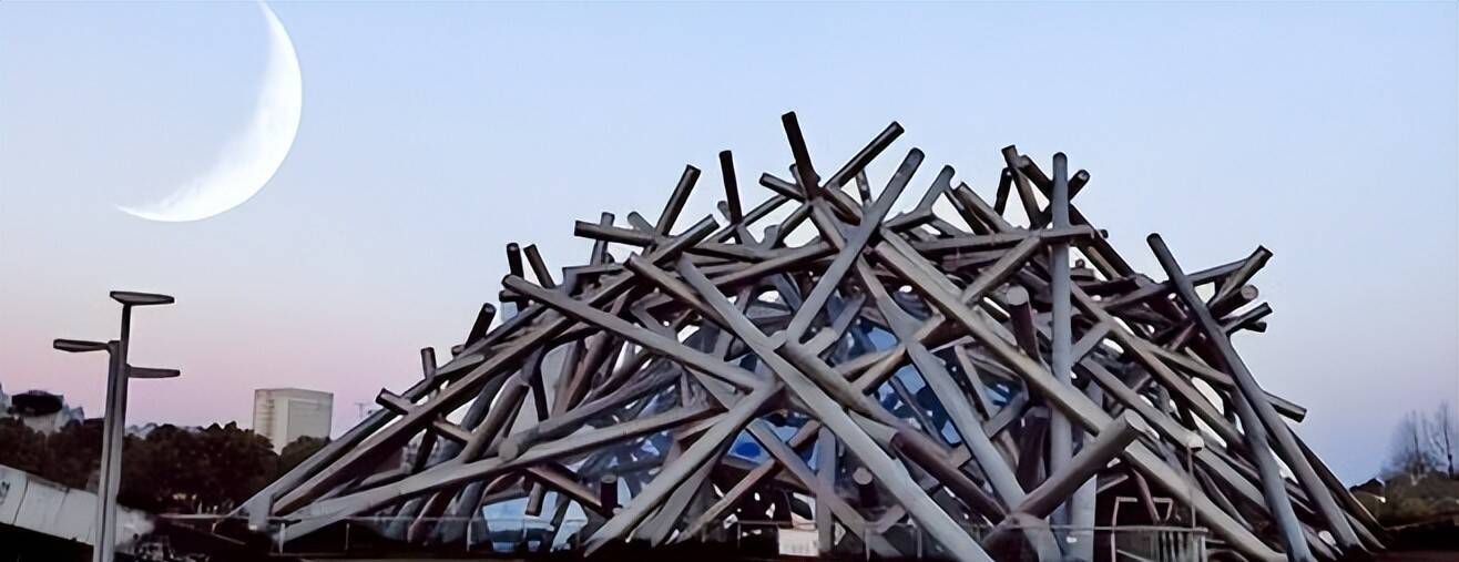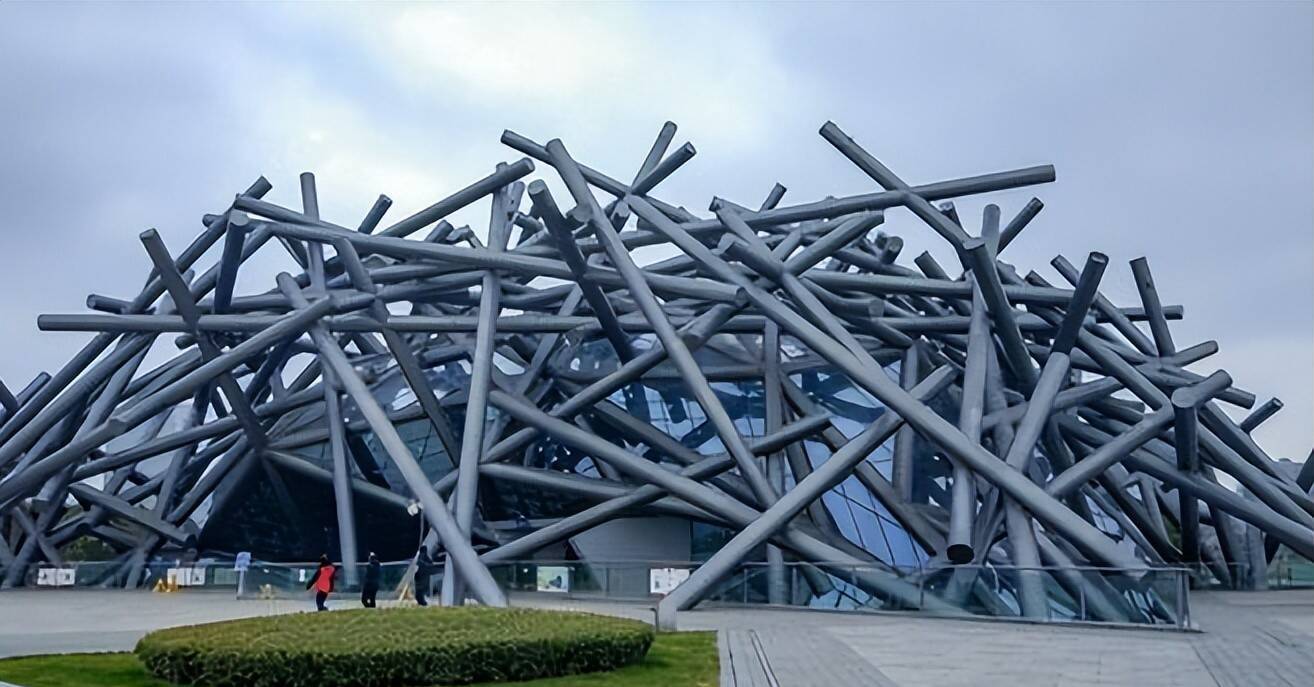 据悉,这座好意思术馆的想象原型是儿童常玩的游戏棒,想象师孟建民鉴戒“喜鹊搭巢”的灵感,将346根大小、粗细不同的“游戏棒”状构件交错搭建,形成访佛鸟巢的不规章形态,极具艺术张力。