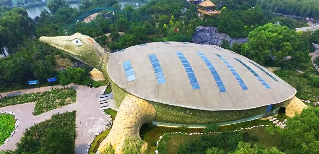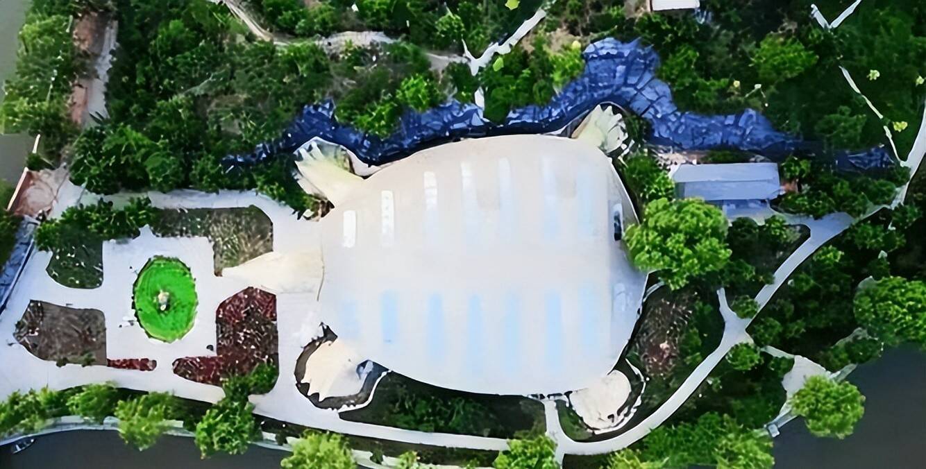 这座建筑全体造型便是一只仰着头的鳖,空洞了了、形态传神,网友们给它起了个戏谑的花名——“寰宇第一王八场馆”。