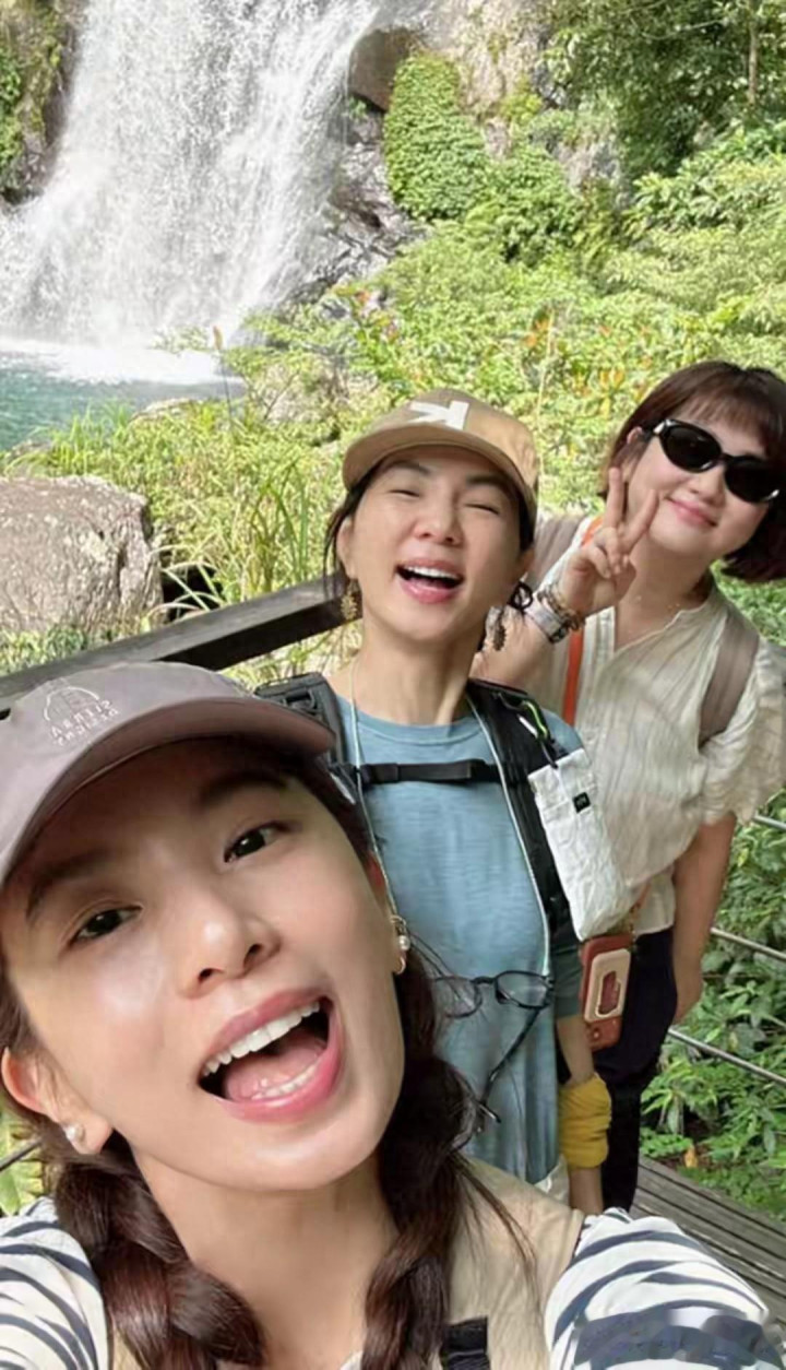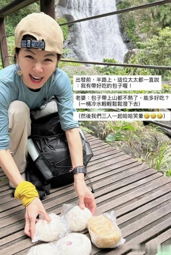 44岁的Ella最抢镜,胸前挂着老花镜,早前演唱会读信就自嘲“39岁后眼睛就不成了”,如今爬山齐离不开,实在又可人。 她还挑升背了包子上山,成果全凉了,被Selina玩弄“带上来就听个响”,三东说念主笑作一团。